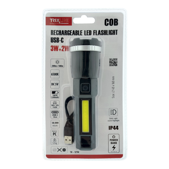 TR-127M COB LED Nabíjecí svítilna USB-C 3W + 2W