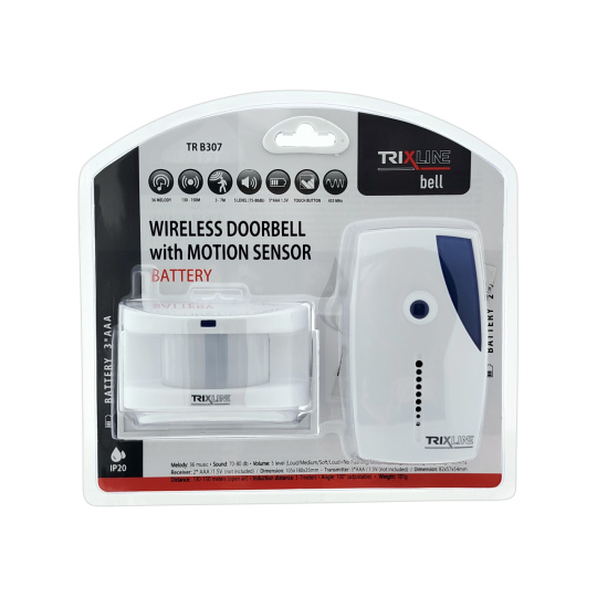 Bezdrátový zvonek Trixline BELL se světelnou signalizací a senzorem pohybu je skvělé řešení všude tam, kde není možné nainstalovat klasické drátové připojení. Mezi hlavní přednosti patří velmi snadná montáž, provoz tlačítka i zvonku na baterie. Velmi vhodný je např. do obchodu, vysílač lze použít samostatně a při vstupu zákazníka se díky senzoru sám spustí.