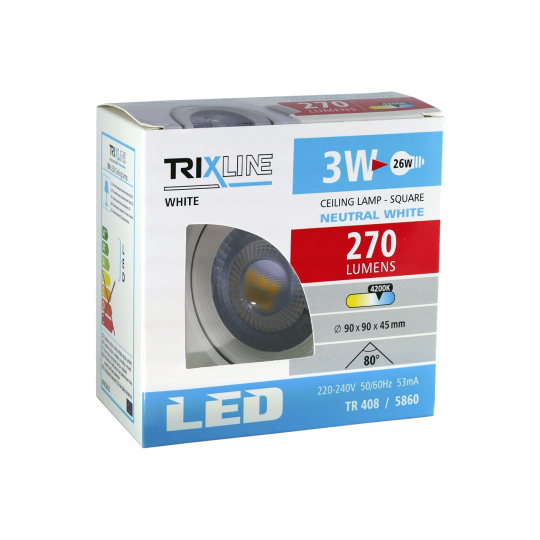 V moderním interiéru se často používají tzv. vestavná světla. Bodové LED světlo TRIXLINE – 3W je ideální volbou. Bodová svítilna s neutráním bílým světlem příjemným pro oči, můžete volit do všech vnitřních prostorů a naklápět či směrovat podle vlastní volby. LED světlo je určeno k zapuštění do sádrokartónu. Disponuje rychlou a snadnou instalací.