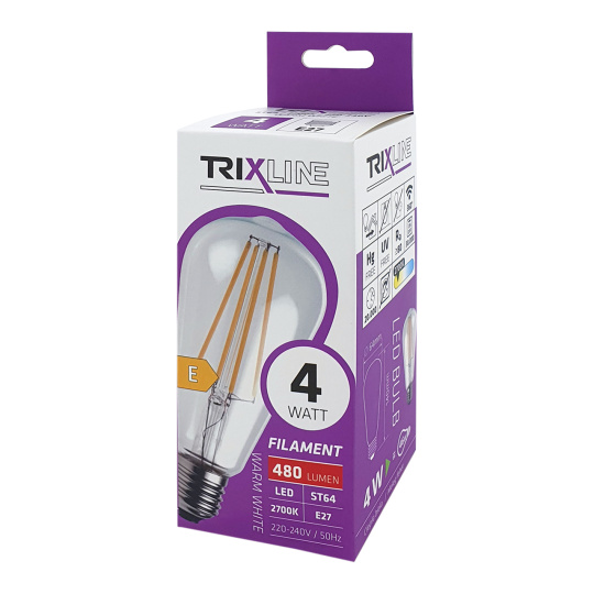 Dekorační LED žárovka FILAMENT 4W 480lm ST64 E27 teplá bílá Trixline