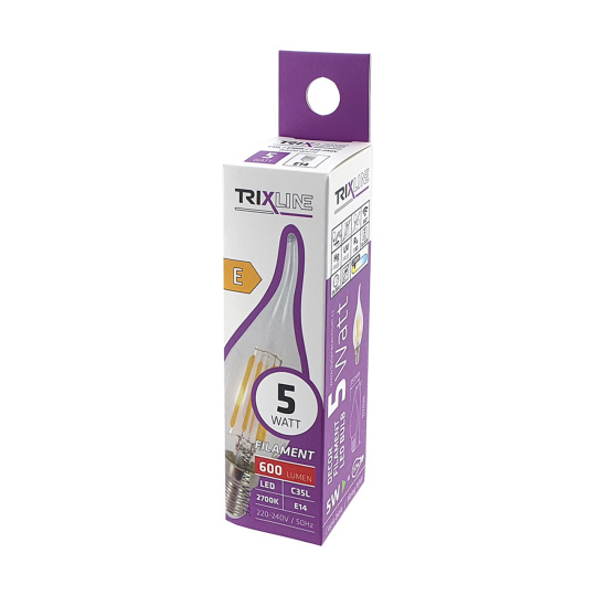 Dekorační LED žárovka FILAMENT Trixline 5W 600lm C35L E14 teplá bílá