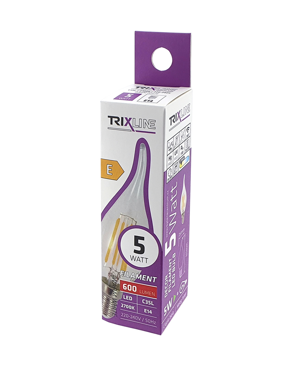 Dekorační LED žárovka FILAMENT Trixline 5W 600lm C35L E14 teplá bílá