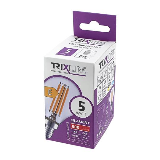 Dekorační LED žárovka FILAMENT Trixline 5W 600lm G45 E14 teplá bílá