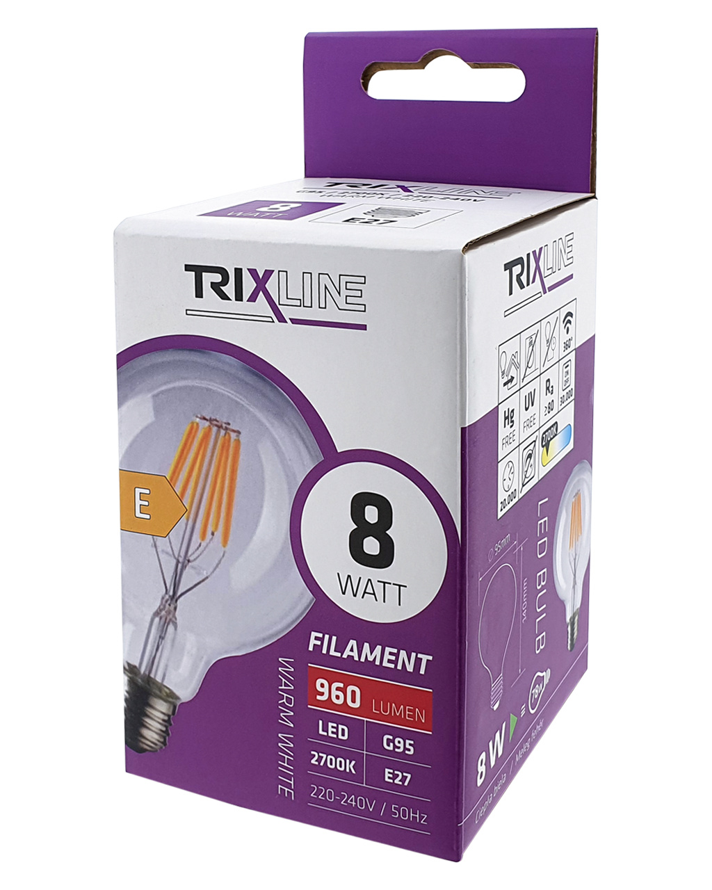 DEKORAČNÍ LED RETRO ŽÁROVKA TRIXLINE s paticí E27 a příkonem 8W ≅ 78W. Dekorativní žárovka imituje první Edisonovy žárovky. Díky LED technologii je i mimořádně úsporná. Používají se zejména do retro svítidel, nebo lze použít také jako volně visící na samostatném závěsu. Pak tvoří velice dekorativní prvek osvětlení nejčastěji se používá v hotelech, restauracích apod.