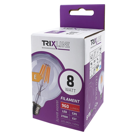 Dekorační LED žárovka FILAMENT Trixline 8W 960lm G95 E27 teplá bílá