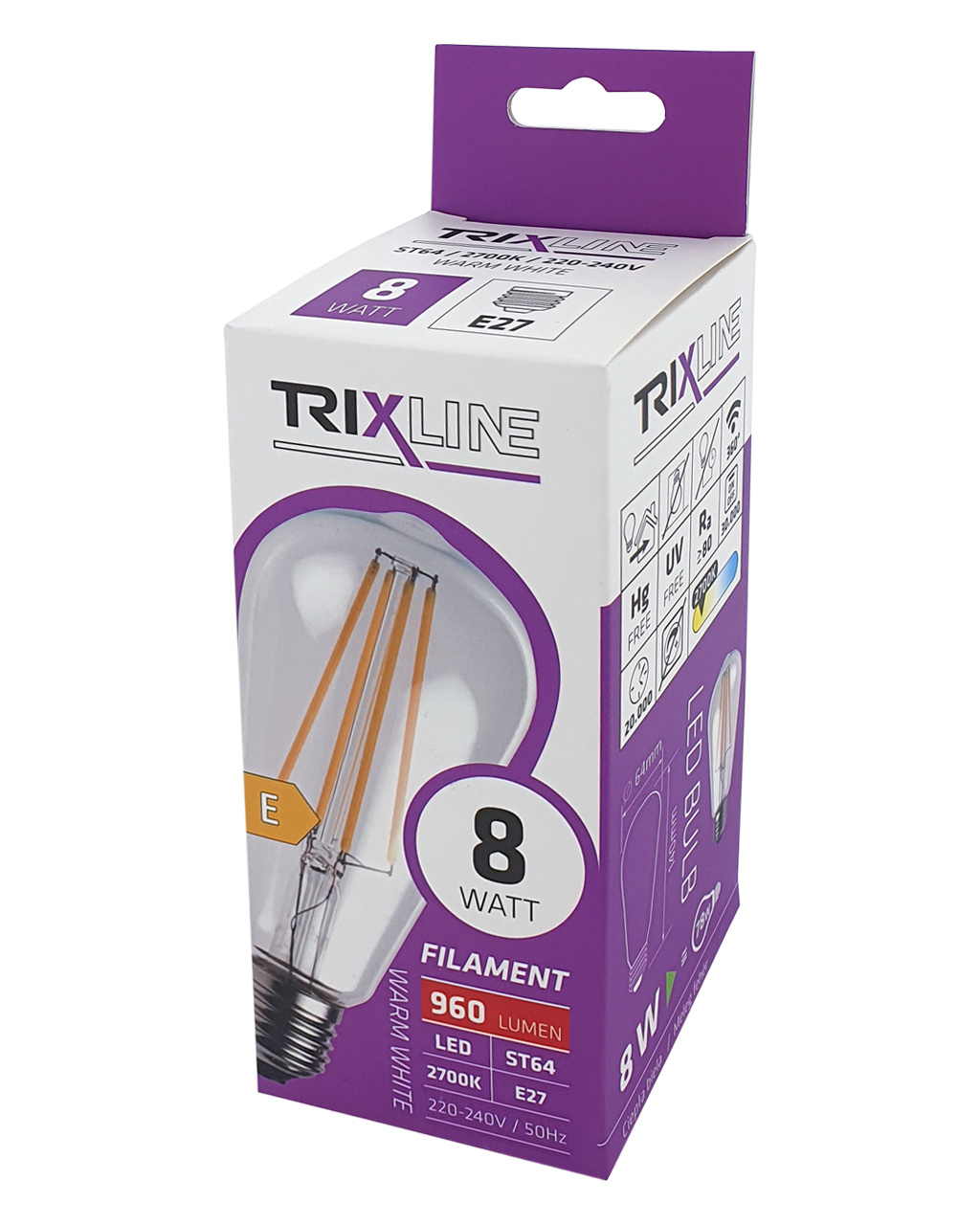 DEKORAČNÍ LED RETRO ŽÁROVKA TRIXLINE s paticí E27 a příkonem 8W ≅ 78W. Dekorativní žárovka imituje první Edisonovy žárovky. Díky LED technologii je i mimořádně úsporná. Používají se zejména do retro svítidel, nebo lze použít také jako volně visící na samostatném závěsu. Pak tvoří velice dekorativní prvek osvětlení nejčastěji se používá v hotelech, restauracích apod.
