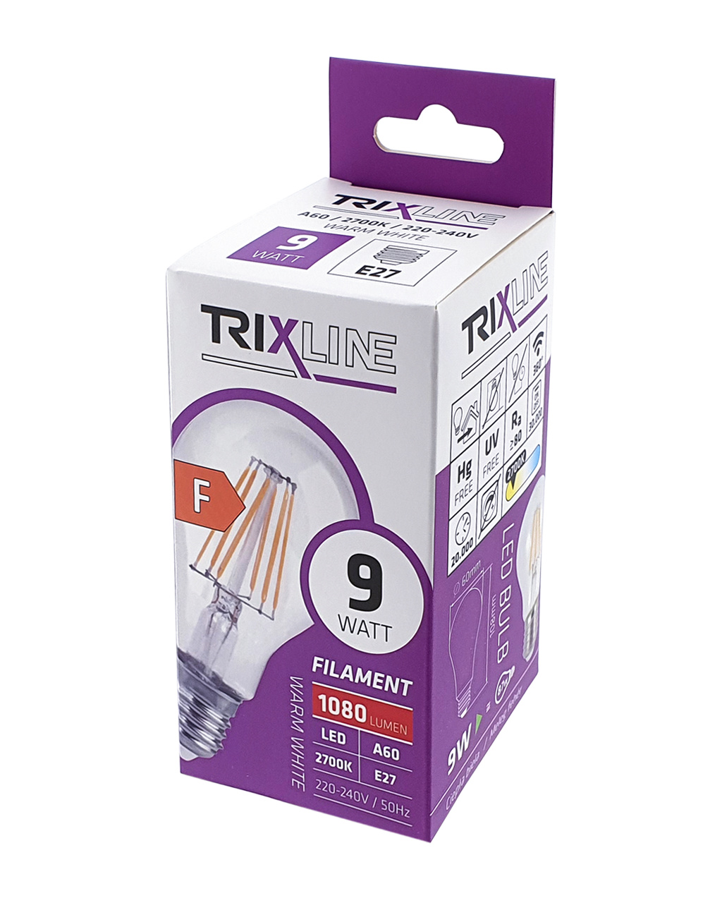 DEKORAČNÍ LED RETRO ŽÁROVKA TRIXLINE s paticí E27 a příkonem 9W ≅ 87W. Dekorativní žárovka imituje první Edisonovy žárovky. Díky LED technologii je i mimořádně úsporná. Používají se zejména do retro svítidel, nebo lze použít také jako volně visící na samostatném závěsu. Pak tvoří velice dekorativní prvek osvětlení nejčastěji se používá v hotelech, restauracích apod.