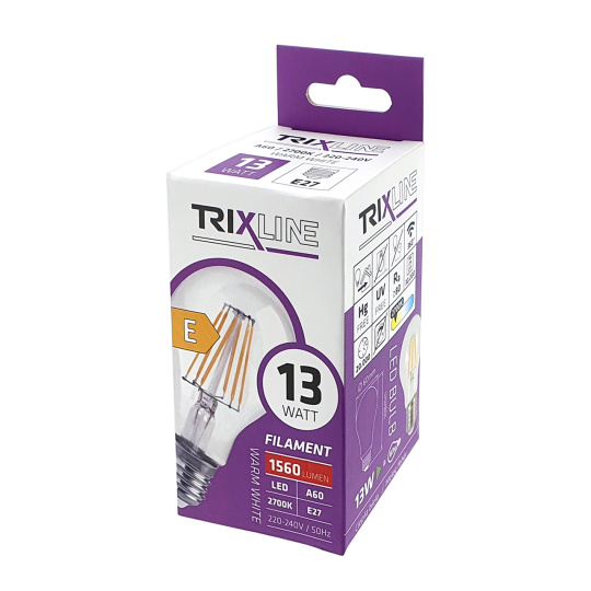 Bezpečnostní informace (PDF)Dekorační LED žárovka FILAMENT Trixline 13W 1560lm A60 E27 teplá bílá