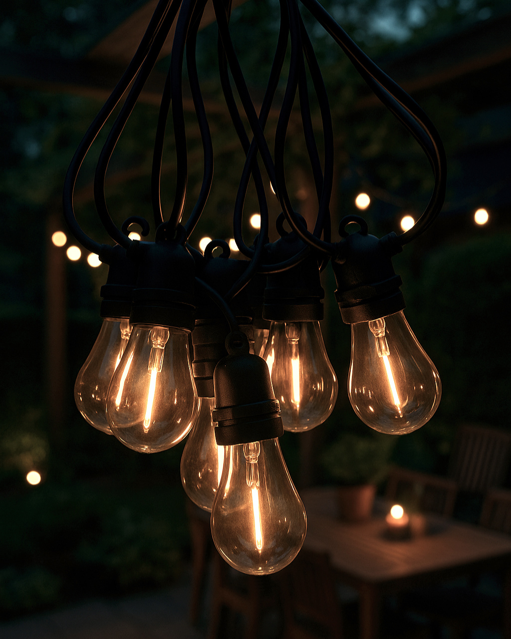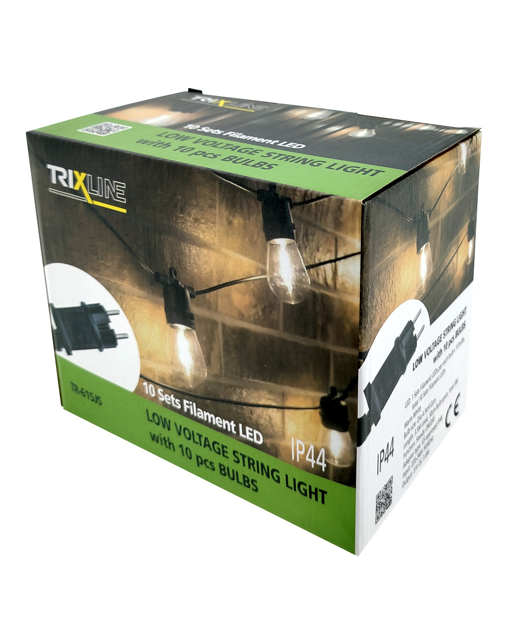 Vytvořte si příjemnou atmosféru na zahradě, terase nebo balkóně s dekorativním LED osvětlením TR-615JS. Tento světelný řetěz obsahuje 10 stylových filament žárovek v teplé bílé barvě (2700K) na celkové délce 8 metrů. Robustní plastové provedení s krytím IP44 zajišťuje odolnost vůči povětrnostním vlivům, a je tak ideální pro venkovní použití. Světelný řetěz je napájen ze sítě (220–240 V) a má bezpečný výstup 31V DC / 3,6W. Díky 3,5 metrovému přívodnímu kabelu je instalace snadná a flexibilní.