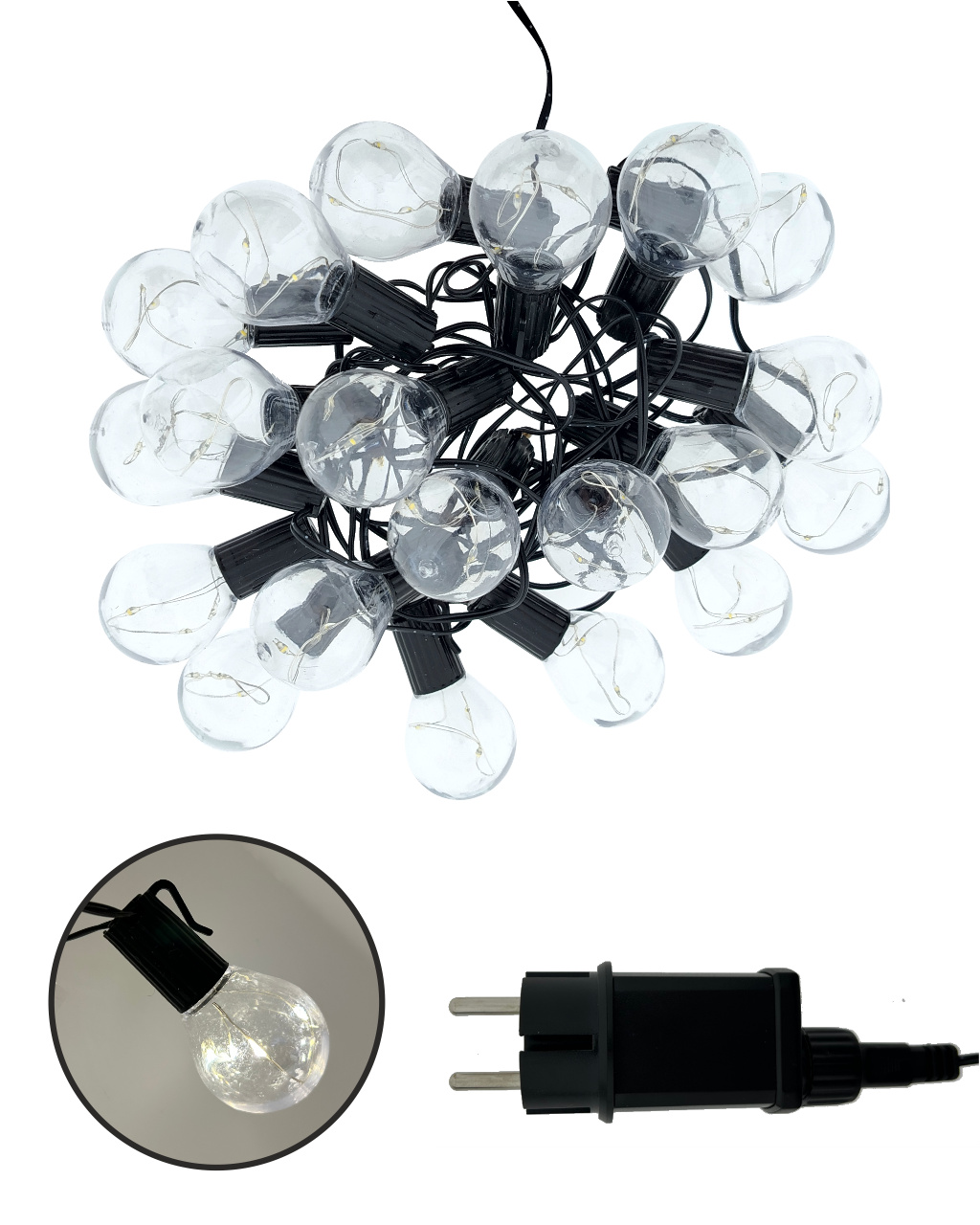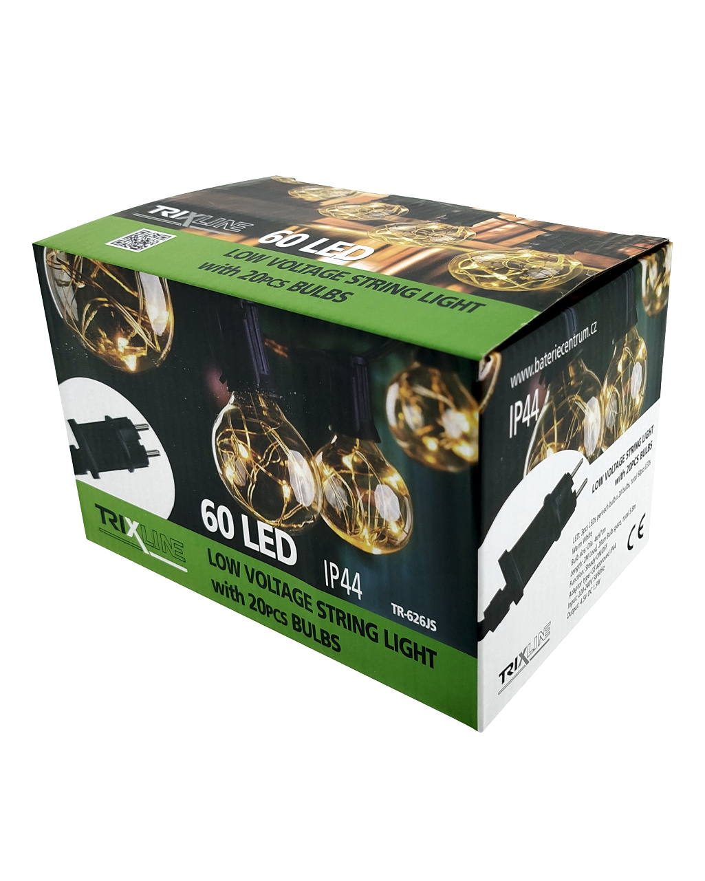 Vytvořte si příjemnou atmosféru na zahradě, terase nebo balkóně s dekorativním LED osvětlením TR-626JS. Tento světelný řetěz obsahuje 20 stylových žárovek, z nichž každá ukrývá 3 teplé bílé LED diody (2700K) – celkem tedy 60 LED na celkové délce 5,8 metru. Robustní plastové provedení s krytím IP44 zajišťuje odolnost vůči povětrnostním vlivům, a je tak ideální pro venkovní použití. Světelný řetěz je napájen ze sítě (220–240 V) a má bezpečný výstup 4,5 V DC / 1,5 W. Díky 2 metrovému přívodnímu kabelu je instalace snadná a flexibilní.