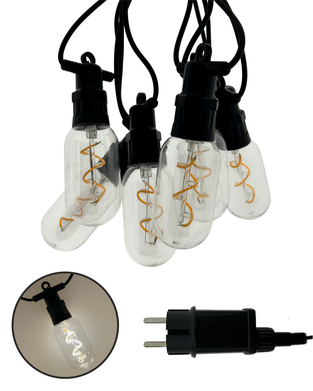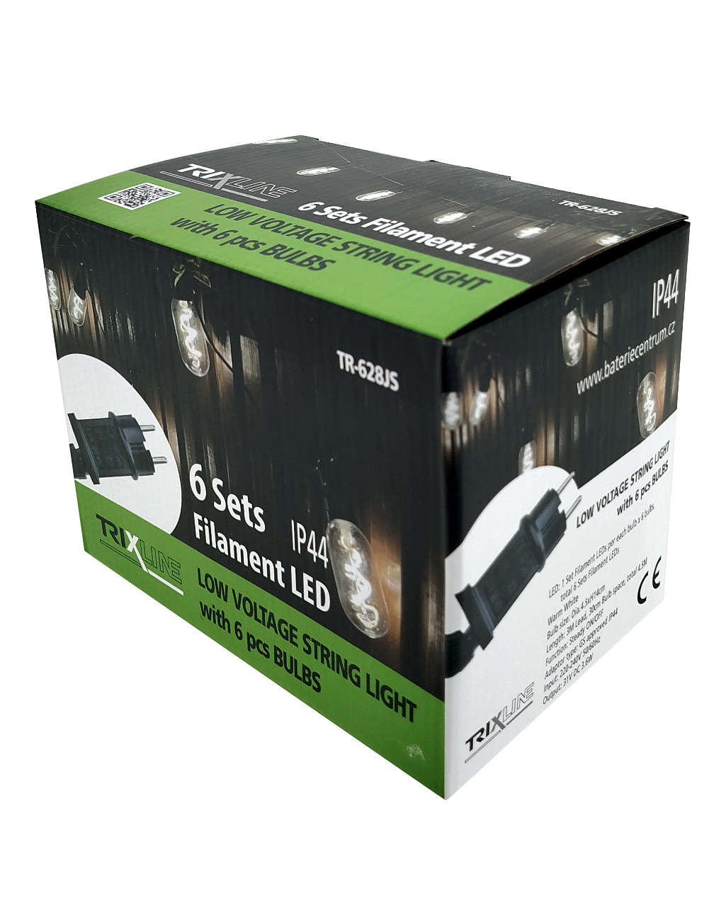 Vytvořte si příjemnou atmosféru na zahradě, terase nebo balkóně s dekorativním LED osvětlením TR-628JS. Tento světelný řetěz obsahuje 6 stylových žárovek v teplé bílé barvě (2700K) na celkové délce 4,5 metru. Robustní plastové provedení s krytím IP44 zajišťuje odolnost vůči povětrnostním vlivům, a je tak ideální pro venkovní použití. Světelný řetěz je napájen ze sítě (220–240V) a má bezpečný výstup 31V DC / 3,6W. Díky 3 metrovému přívodnímu kabelu je instalace snadná a flexibilní.