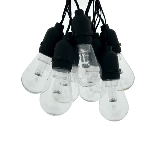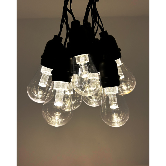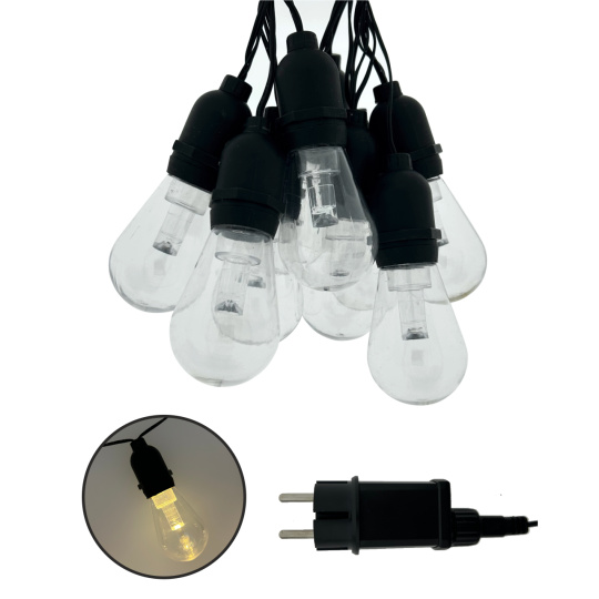 Vytvořte si příjemnou atmosféru na zahradě, terase nebo balkóně s dekorativním LED osvětlením TR-632JS. Tento světelný řetěz obsahuje 10 stylových žárovek v teplé bílé barvě (2700K) na celkové délce 3,8 metru. Robustní plastové provedení s krytím IP44 zajišťuje odolnost vůči povětrnostním vlivům, a je tak ideální pro venkovní použití. Světelný řetěz je napájen ze sítě (220–240 V) a má bezpečný výstup 4,5 V DC / 1,5 W. Díky 2 metrovému přívodnímu kabelu je instalace snadná a flexibilní.