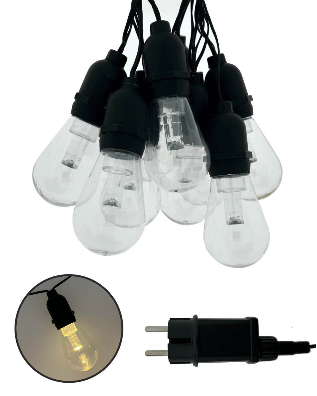 Vytvořte si příjemnou atmosféru na zahradě, terase nebo balkóně s dekorativním LED osvětlením TR-632JS. Tento světelný řetěz obsahuje 10 stylových žárovek v teplé bílé barvě (2700K) na celkové délce 3,8 metru. Robustní plastové provedení s krytím IP44 zajišťuje odolnost vůči povětrnostním vlivům, a je tak ideální pro venkovní použití. Světelný řetěz je napájen ze sítě (220–240 V) a má bezpečný výstup 4,5 V DC / 1,5 W. Díky 2 metrovému přívodnímu kabelu je instalace snadná a flexibilní.
