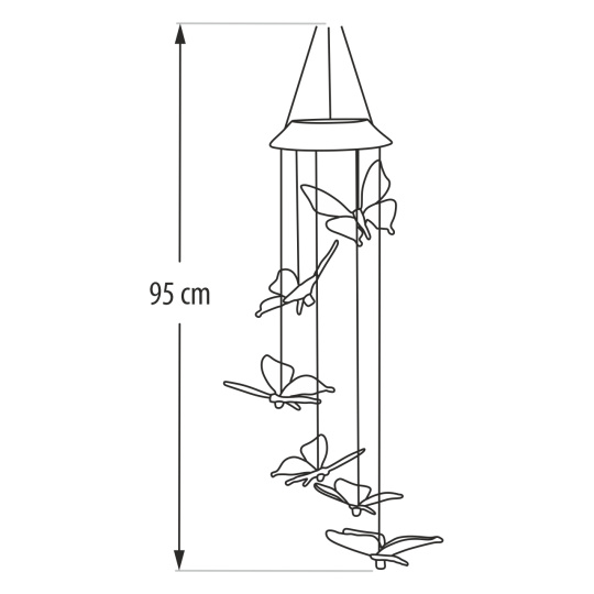 Stylové dekorativní osvětlení vaší zahrady, terasy nebo balkónu. LED solární zahradní girlanda TR-488D se skládá ze šesti RGB LED diod ve tvaru motýla rozmístěných v kruhu kolem solárního panelu. Po zapnutí a dostatečném nabití se RGB barvy samovolně mění. Díky solárnímu napájení je ideální pro venkovní použití bez nutnosti připojení k elektrické síti.