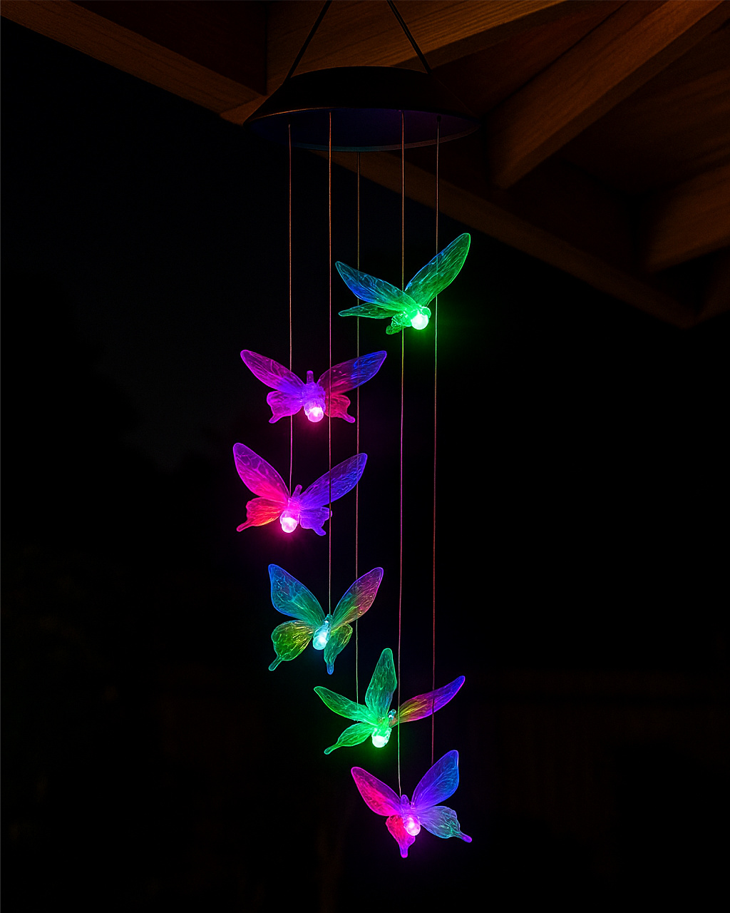 Stylové dekorativní osvětlení vaší zahrady, terasy nebo balkónu. LED solární zahradní girlanda TR-488D se skládá ze šesti RGB LED diod ve tvaru motýla rozmístěných v kruhu kolem solárního panelu. Po zapnutí a dostatečném nabití se RGB barvy samovolně mění. Díky solárnímu napájení je ideální pro venkovní použití bez nutnosti připojení k elektrické síti.