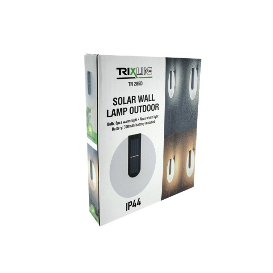 Stylové a úsporné řešení pro osvětlení vaší zahrady, terasy nebo balkónu. LED solární nástěnné světlo TR-285D díky přiloženému připevňovacímu materiálu snadno umístíte třeba na stěnu, zvolit můžete mezi 8 LED světýlky teplé barvy (2700K) nebo 8LED světýlky studené barvy (6400K). Díky solárnímu napájení je ideální pro venkovní použití bez nutnosti připojení k elektrické síti.