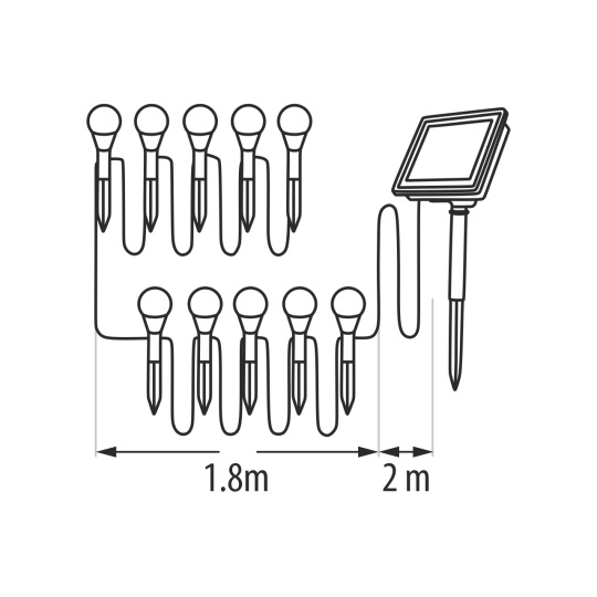 Stylové a úsporné řešení pro osvětlení vaší zahrady, terasy nebo balkónu. LED solární světlo TR-333D se skládá z deseti jednotlivých RGB LED diodových zápichů rozmístěných na kabelu o délce 3,8 metru. Díky solárnímu napájení a možnosti volby režimů svícení je ideální pro venkovní použití bez nutnosti připojení k elektrické síti.