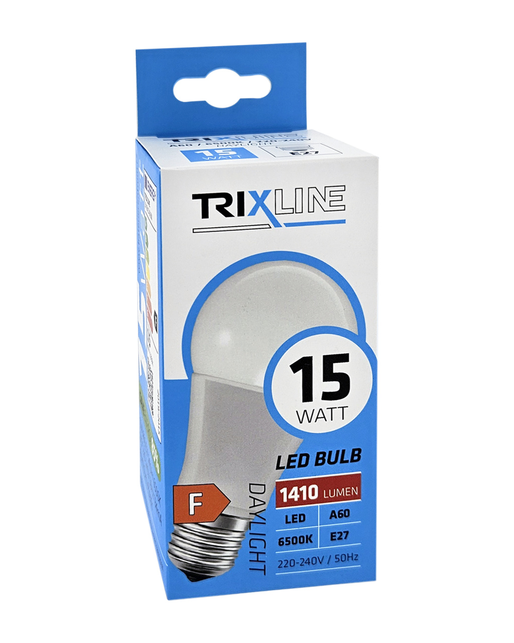 LED úsporná žárovka TRIXLINE s paticí E27, šetrná k životnému prostředí, neobsahuje žádnou rtuť ani olovo, navíc se dobře osvědčuje i při extrémně nízkých i vysokých teplotách, kdy s vláknovými žárovkami bývají problémy. Její životnost dosahuje až 30 000 hodin. Díky svému výkonu 15W výborně poslouží jako náhrada za klasickou 100W žárovku. LED žárovka se po zapnutí okamžitě rozsvítí bez jakékoliv prodlevy a vyzařuje studené bílé světlo 6500K.