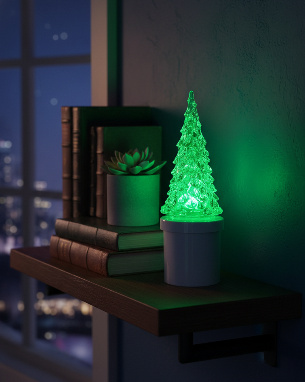 Bílá LED svíčka se zeleným stromečkem HD-134 HOME DECOR s blikajícím plamínkem. Vhodná alternativa klasické svíčky. Snadné a bezpečné použití bez rizika požáru. Zapnutí pootočením víka. Napájeno pomoci 2x C R14 UM2 baterií (jsou součástí).