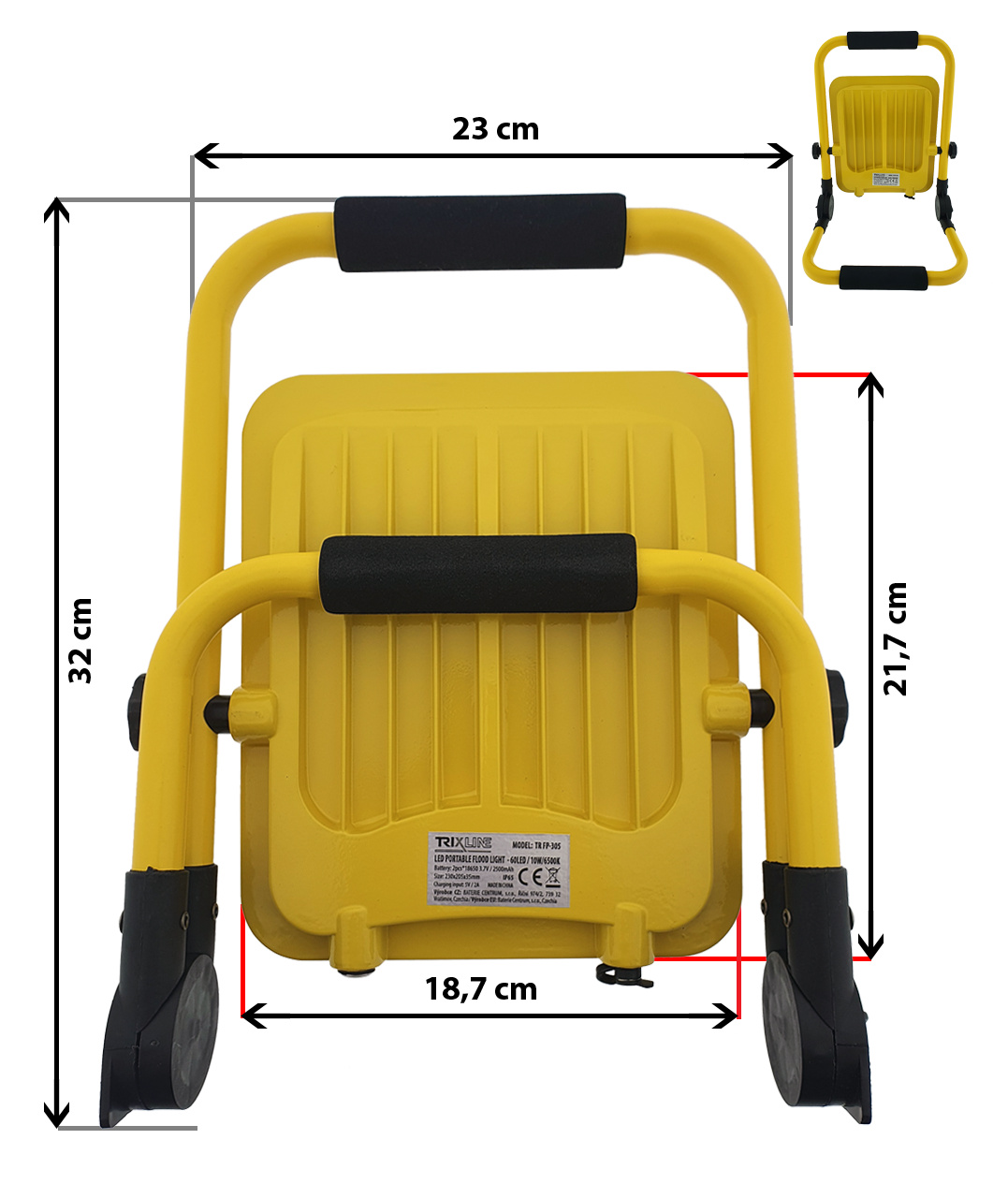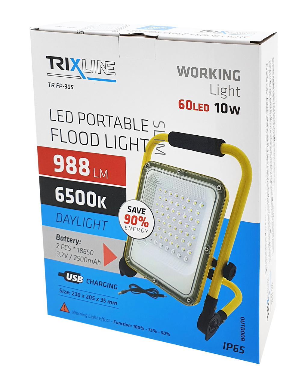 LED pracovní světlo TRIXLINE TR FP-305 je lehce přenosné, odolné, díky krytí IP65 vhodné pro práci v dílnách, garážích, servisech, ve skladech, na stavbách, při kempování, rybaření, opravě aut apod. Rotující, lze flexibilně vertikálně otáčet o 360° a naklápět o 180°. Energeticky úsporné - ušetříte 90% energie. Napájeno pomoci 2ks nabíjecích baterií, díky kterým vydrží svítit až 8h! Světlo snadno nabijete pomoci USB nabíječky.
