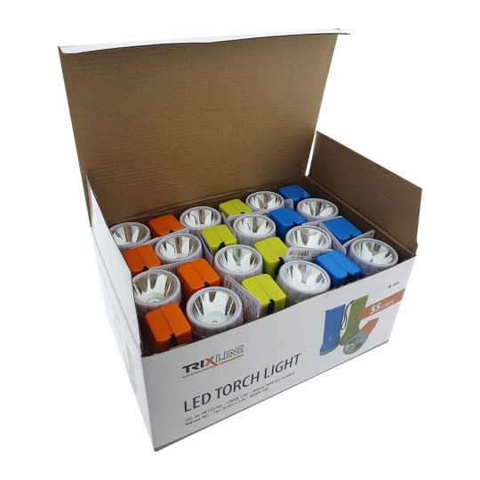 Praktická, lehká LED ruční svítilna TR-049L Trixline je napájena pomoci 2xAA tužkových baterií (nejsou součástí balení). K zapnutí slouží vypínač umístěný na těle svítilny. Tělo svítilny má obdelníkový tvar. Uvedená cena je za 1ks svítilny. V nabídce máme 3 barevné provedení - žlutou, oranžovou a modrou (do poznámky v objednávce můžete uvést o kterou barvu svítilny máte zájem).