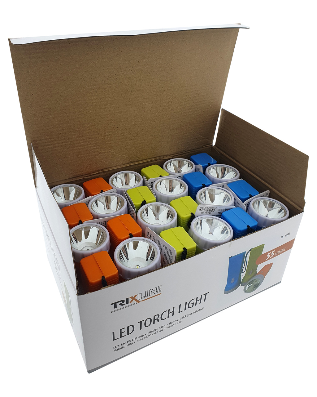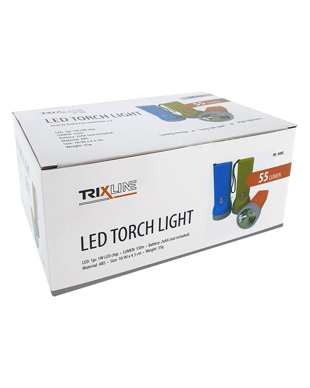 Praktická, lehká LED ruční svítilna TR-049L Trixline je napájena pomoci 2xAA tužkových baterií (nejsou součástí balení). K zapnutí slouží vypínač umístěný na těle svítilny. Tělo svítilny má obdelníkový tvar. Uvedená cena je za 1ks svítilny. V nabídce máme 3 barevné provedení - žlutou, oranžovou a modrou (do poznámky v objednávce můžete uvést o kterou barvu svítilny máte zájem).