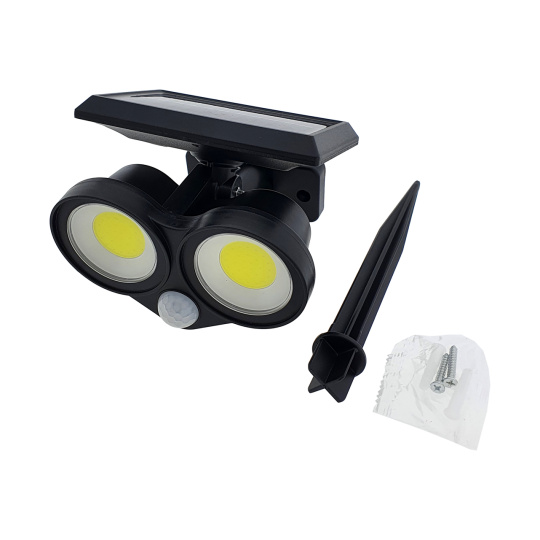 Obsah balení: 1 ks LED solární reflektor, 1 ks zapichovací kolík, 2 šroubky, 2 hmoždinky