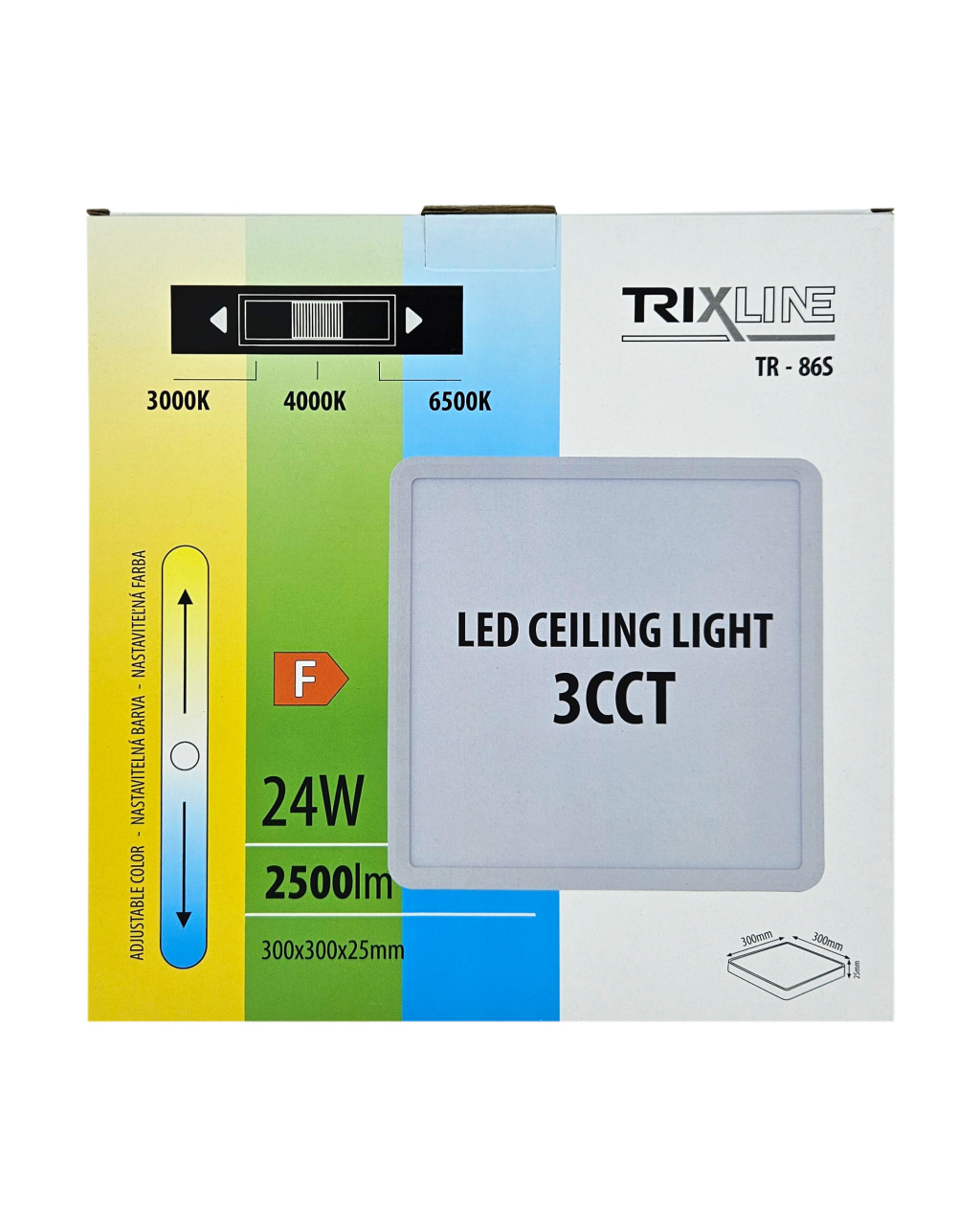 Bezpečnostní informace (PDF)LED stropní 3CCT svítidlo TR-86S - 24W 2500lm 30x30x2,5cm Trixline