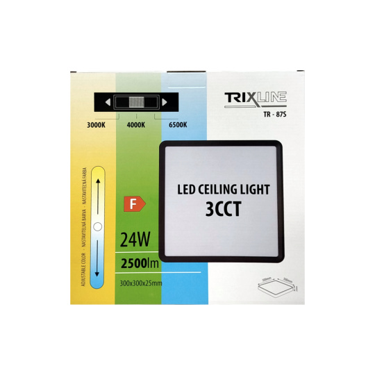 Bezpečnostní informace (PDF)LED stropní 3CCT svítidlo TR-87S - 24W 2500lm 30x30x2,5cm Trixline