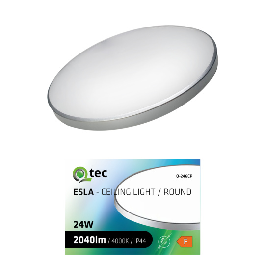 LED stropní svítidlo ESLA Q-246CP 24W 2040lm 4000K ø37cm/kruhové stříbrné QTEC