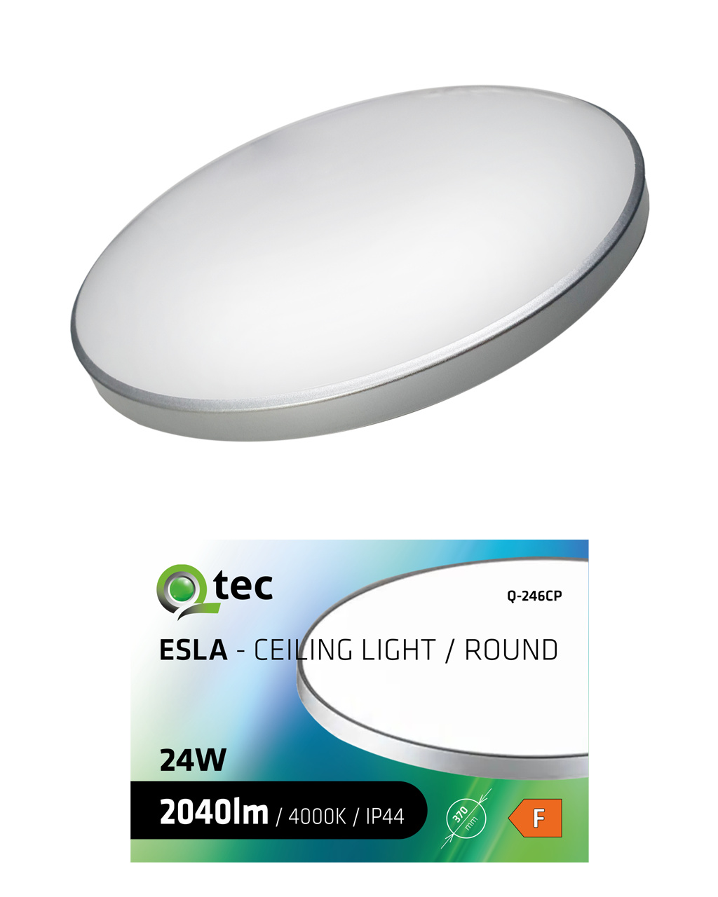 LED stropní svítidlo ESLA Q-246CP 24W 2040lm 4000K ø37cm/kruhové stříbrné QTEC