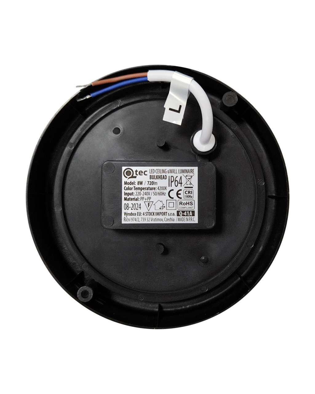 LED stropní svítidlo Q-41A Qtec s výkonem 8W zajišťuje nízkou spotřebu energie při zachování vysoké svítivosti, přičemž jeho světelný tok 720lm poskytuje dostatečné osvětlení pro menší a středně velké místnosti. Neutrální bílá barva světla 4200K je vhodná pro pracovní prostory i domácí použití. Index podání barev (CRI) ≥80 zaručuje přirozené a věrné podání barev. Díky úhlu vyzařování 180° je světlo rovnoměrně rozptýleno bez oslnění a dlouhá životnost 25 000 hodin přispívá k dlouhodobému a spolehlivému provozu. Svítidlo s krytím IP64 nabízí vysokou odolnost vůči prachu a stříkající vodě, díky čemuž je vhodné pro venkovní i vnitřní použití. Svítidlo je ideální pro koupelny, toalety, chodby, garáže, venkovní přístřešky nebo technické místnosti, kde je vyžadována zvýšená ochrana proti vlhkosti a prachu.