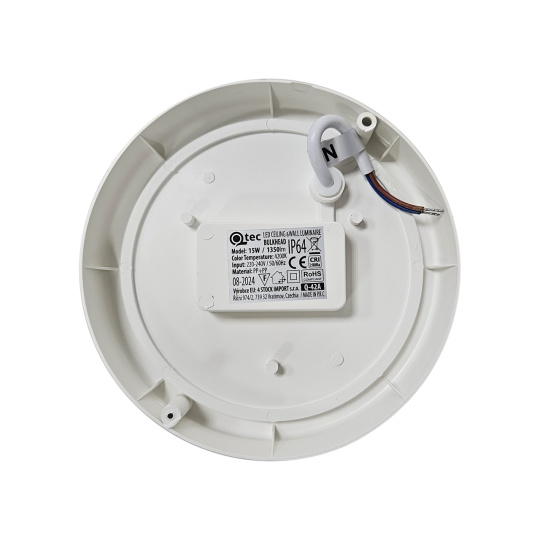 LED stropní svítidlo Q-42A Qtec s výkonem 15W zajišťuje nízkou spotřebu energie při zachování vysoké svítivosti, přičemž jeho světelný tok 1350lm zajišťuje efektivní a rovnoměrné osvětlení. Neutrální bílá barva světla 4200K je vhodná pro komerční prostory i domácí použití. Index podání barev (CRI) ≥80 zaručuje přirozené a věrné podání barev. Díky úhlu vyzařování 180° je světlo rovnoměrně rozptýleno bez oslnění. Dlouhá životnost 25 000 hodin přispívá k dlouhodobému a spolehlivému provozu. Svítidlo s krytím IP64 nabízí vysokou odolnost vůči prachu a stříkající vodě, díky čemuž je vhodné pro venkovní i vnitřní použití. Svítidlo je ideální pro koupelny, toalety, chodby, garáže, venkovní přístřešky nebo technické místnosti, kde je vyžadována zvýšená ochrana proti vlhkosti a prachu.