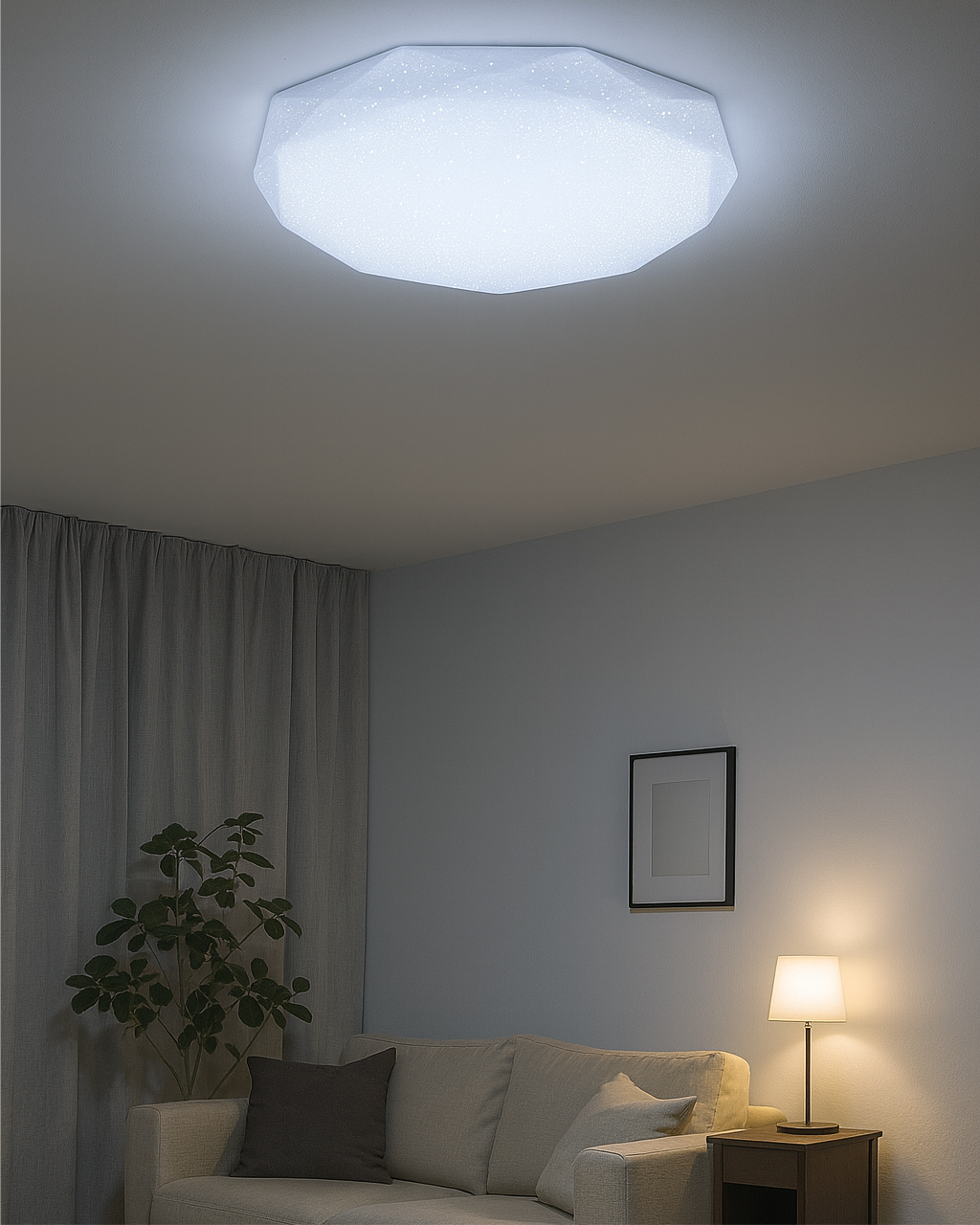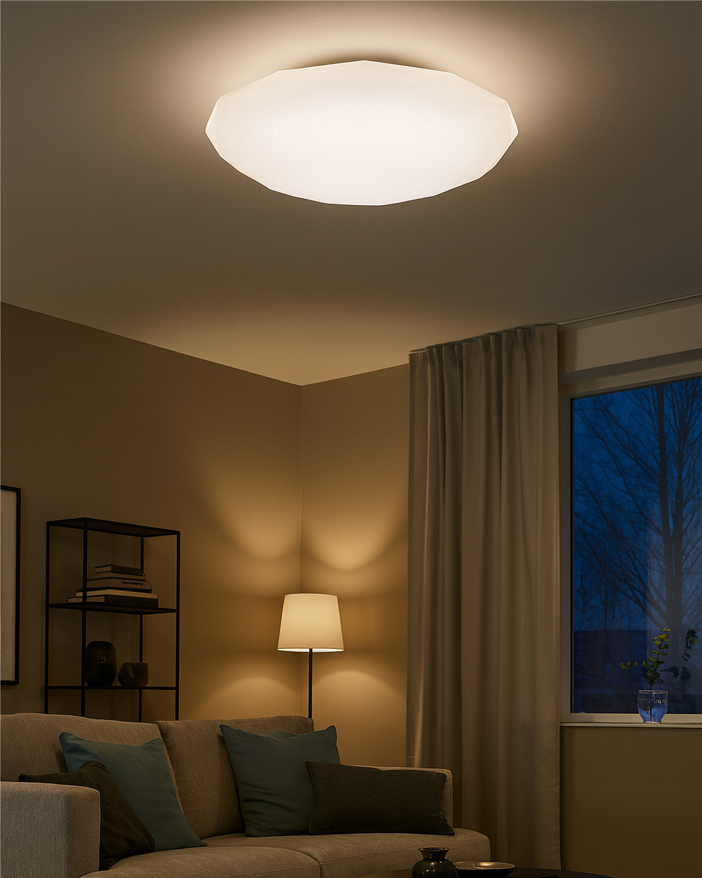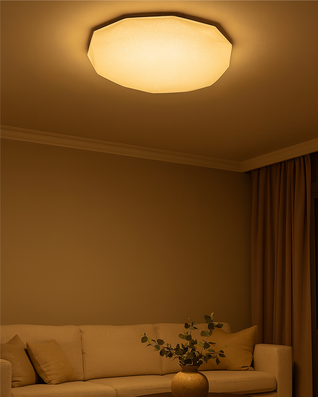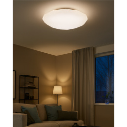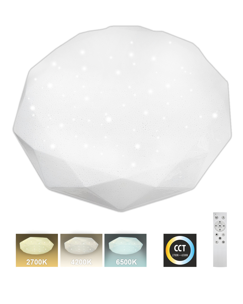 LED stropní svítidlo TR-601C - INDUS Trixline v bílé barvě se třpytivým efektem je určeno do vnitřních prostor jako jsou obývací pokoje, ložnice, haly, kanceláře, chodby a podobná místa. Pomocí přiloženého ovladače můžete přepínat mezi třemi světelnými teplotami v rozmezí 2700K až 6500K, které lze stmívat dle potřeby pro navození příjemné atmosféry. Při maximálním ztlumení klesá spotřeba až na pouhých 14W z původních 80W, což zaručuje úsporu energie. Další možností na dálkovém ovladači je i noční režim a funkce 30 vteřin po jejichž uplynutí se LED svítidlo samo vypne. Svítidlo si po vypnutí pamatuje poslední nastavený režim, což zajišťuje pohodlné a intuitivní používání.