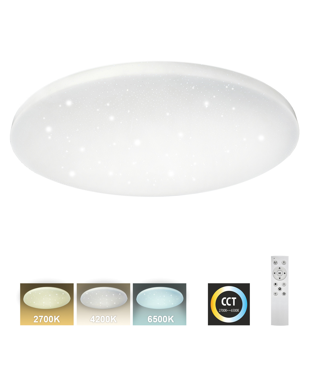 LED stropní svítidlo TR-602C - IPOLY Trixline v bílé barvě se třpytivým efektem je určeno do vnitřních prostor jako jsou obývací pokoje, ložnice, haly, kanceláře, chodby a podobná místa. Pomocí přiloženého ovladače můžete přepínat mezi třemi světelnými teplotami v rozmezí 2700K až 6500K, které lze stmívat dle potřeby pro navození příjemné atmosféry. Při maximálním ztlumení klesá spotřeba až na pouhých 8W z původních 60W, což zaručuje úsporu energie. Další možností na dálkovém ovladači je i noční režim a funkce 30 vteřin po jejichž uplynutí se LED svítidlo samo vypne. Svítidlo si po vypnutí pamatuje poslední nastavený režim, což zajišťuje pohodlné a intuitivní používání.