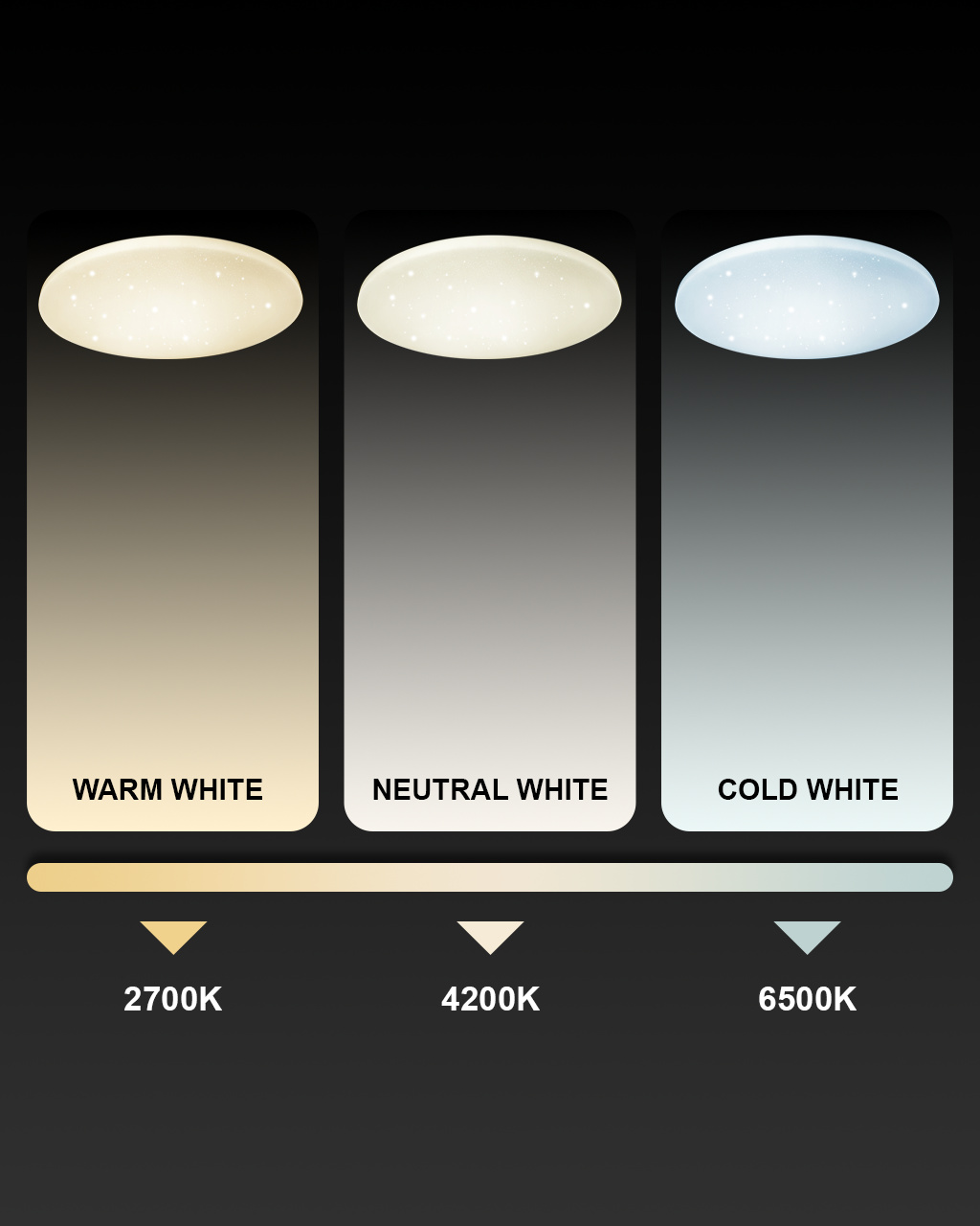 LED stropní svítidlo TR-603C - IPOLY Trixline v bílé barvě se třpytivým efektem je určeno do vnitřních prostor jako jsou obývací pokoje, ložnice, haly, kanceláře, chodby a podobná místa. Pomocí přiloženého ovladače můžete přepínat mezi třemi světelnými teplotami v rozmezí 2700K až 6500K, které lze stmívat dle potřeby pro navození příjemné atmosféry. Při maximálním ztlumení klesá spotřeba až na pouhých 14W z původních 80W, což zaručuje úsporu energie. Další možností na dálkovém ovladači je i noční režim a funkce 30 vteřin po jejichž uplynutí se LED svítidlo samo vypne. Svítidlo si po vypnutí pamatuje poslední nastavený režim, což zajišťuje pohodlné a intuitivní používání.