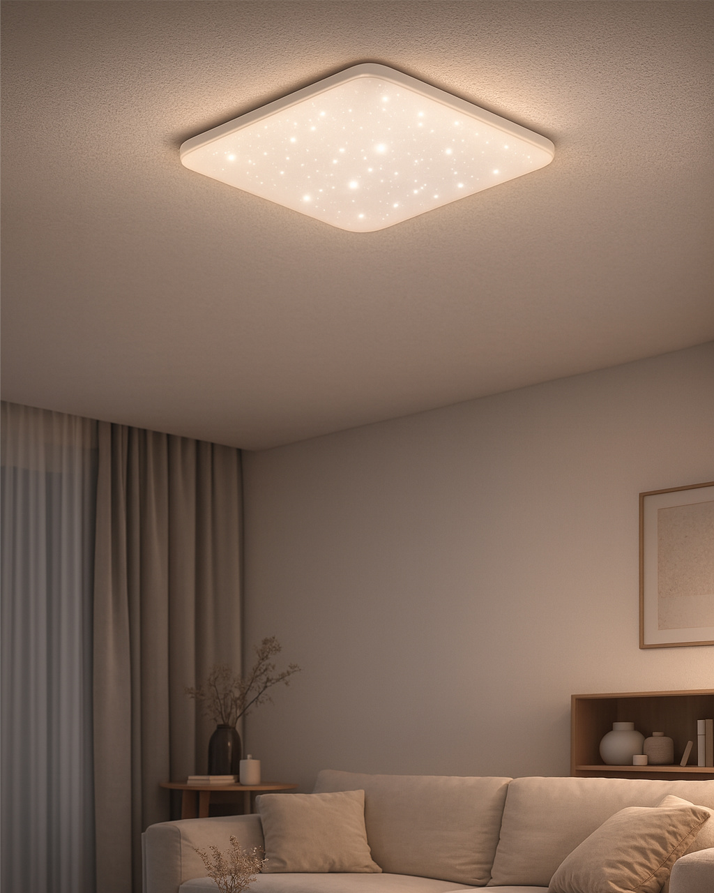 LED stropní svítidlo TR-605S - FLORA Trixline v bílé barvě se třpytivým efektem je určeno do vnitřních prostor jako jsou obývací pokoje, ložnice, haly, kanceláře, chodby a podobná místa. Pomocí přiloženého ovladače můžete přepínat mezi třemi světelnými teplotami v rozmezí 2700K až 6500K, které lze stmívat dle potřeby pro navození příjemné atmosféry. Při maximálním ztlumení klesá spotřeba až na pouhých 8W z původních 60W, což zaručuje úsporu energie. Další možností na dálkovém ovladači je i noční režim a funkce 30 vteřin po jejichž uplynutí se LED svítidlo samo vypne. Svítidlo si po vypnutí pamatuje poslední nastavený režim, což zajišťuje pohodlné a intuitivní používání.