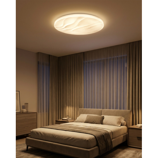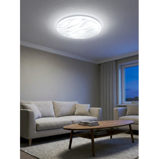 LED stropní svítidlo TR-607C - LIKA Trixline v bílé barvě se třpytivým efektem je určeno do vnitřních prostor jako jsou obývací pokoje, ložnice, haly, kanceláře, chodby a podobná místa. Pomocí přiloženého ovladače můžete přepínat mezi třemi světelnými teplotami v rozmezí 2700K až 6500K, které lze stmívat dle potřeby pro navození příjemné atmosféry. Při maximálním ztlumení klesá spotřeba až na pouhých 8W z původních 60W, což zaručuje úsporu energie. Další možností na dálkovém ovladači je i noční režim a funkce 30 vteřin po jejichž uplynutí se LED svítidlo samo vypne. Svítidlo si po vypnutí pamatuje poslední nastavený režim, což zajišťuje pohodlné a intuitivní používání.