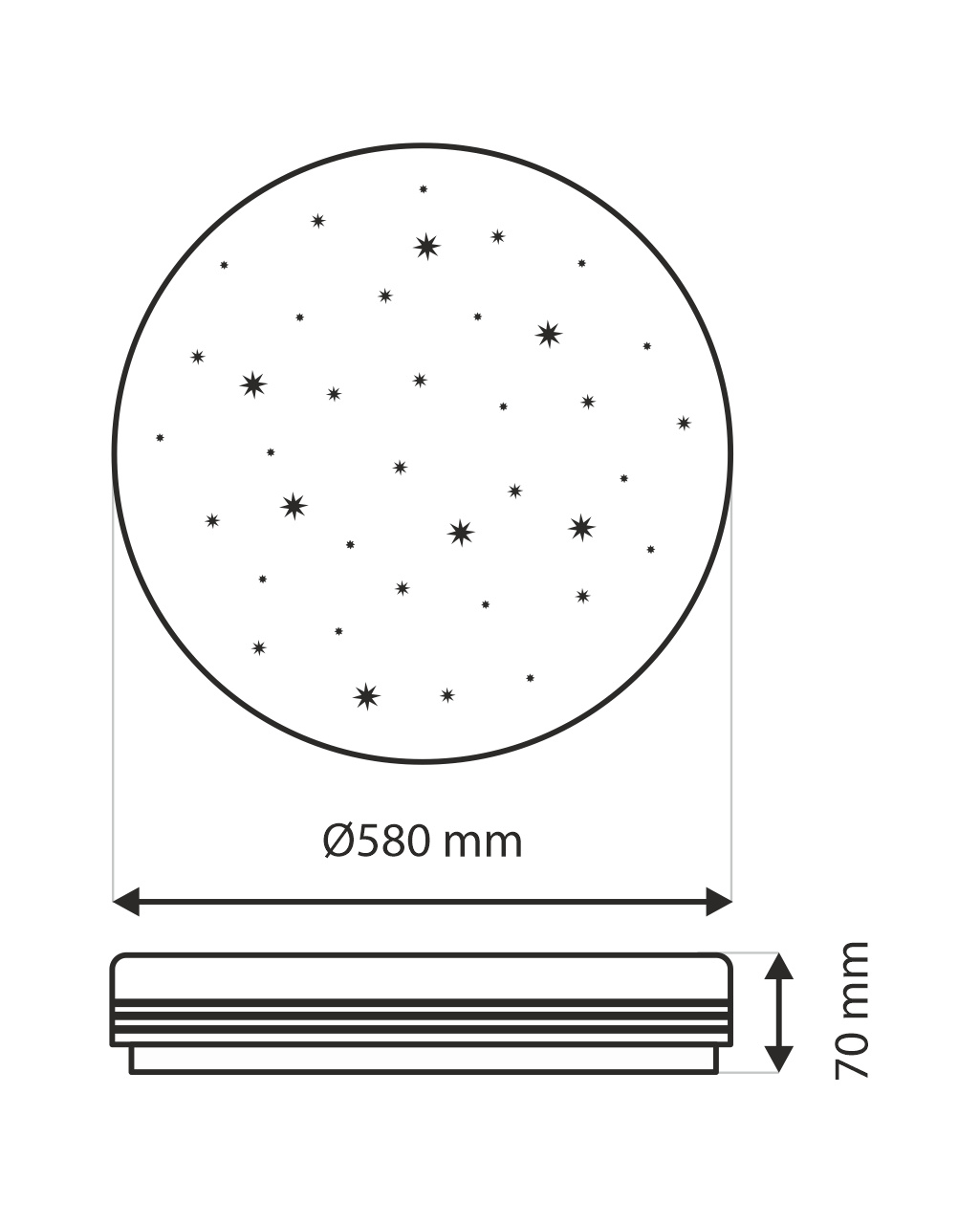 Vnější rozměr světla: ø580x70mm