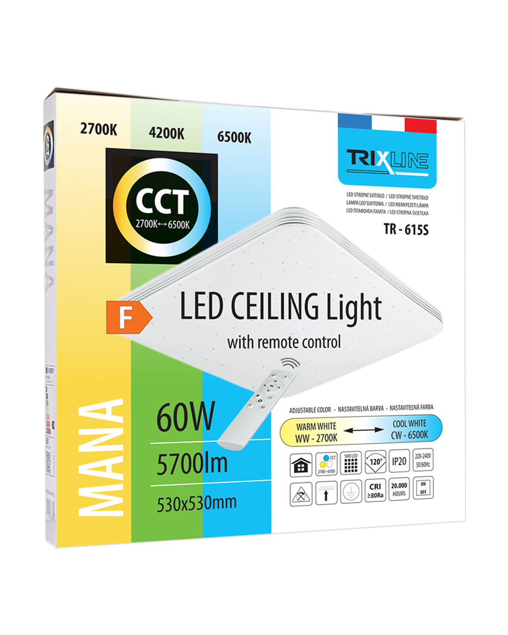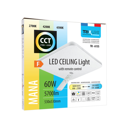 LED stropní svítidlo TR-615S - MANA 60W 5700lm 53x53cm CCT + ovladač Trixline
