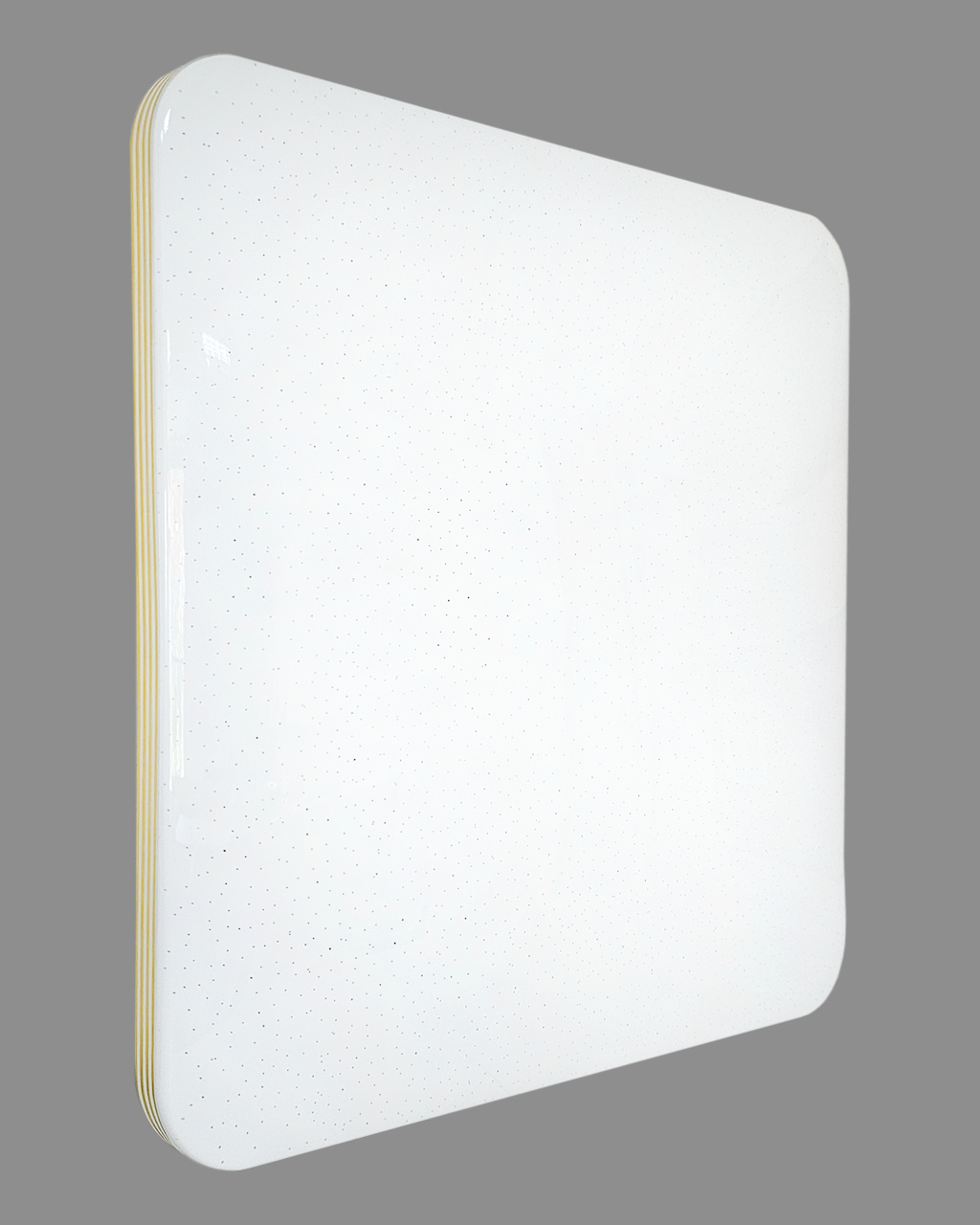 LED stropní svítidlo TR-615S - MANA Trixline v bílé barvě se čtyřmi zlatými proužky po obvodu a třpytivým světelným efektem. Svítidlo má variabilní design, kdy můžete odejmout zlaté proužky a ponechat pouze čistě bílé okraje. Je určeno do vnitřních prostor jako jsou obývací pokoje, ložnice, haly, kanceláře, chodby a podobná místa. Pomocí přiloženého ovladače můžete přepínat mezi třemi světelnými teplotami v rozmezí 2700K až 6500K, které lze stmívat dle potřeby pro navození příjemné atmosféry. Při maximálním ztlumení klesá spotřeba až na pouhých 8W z původních 60W, což zaručuje úsporu energie. Další možností na dálkovém ovladači je i noční režim a funkce 30 vteřin po jejichž uplynutí se LED svítidlo samo vypne. Svítidlo si po vypnutí pamatuje poslední nastavený režim, což zajišťuje pohodlné a intuitivní používání.