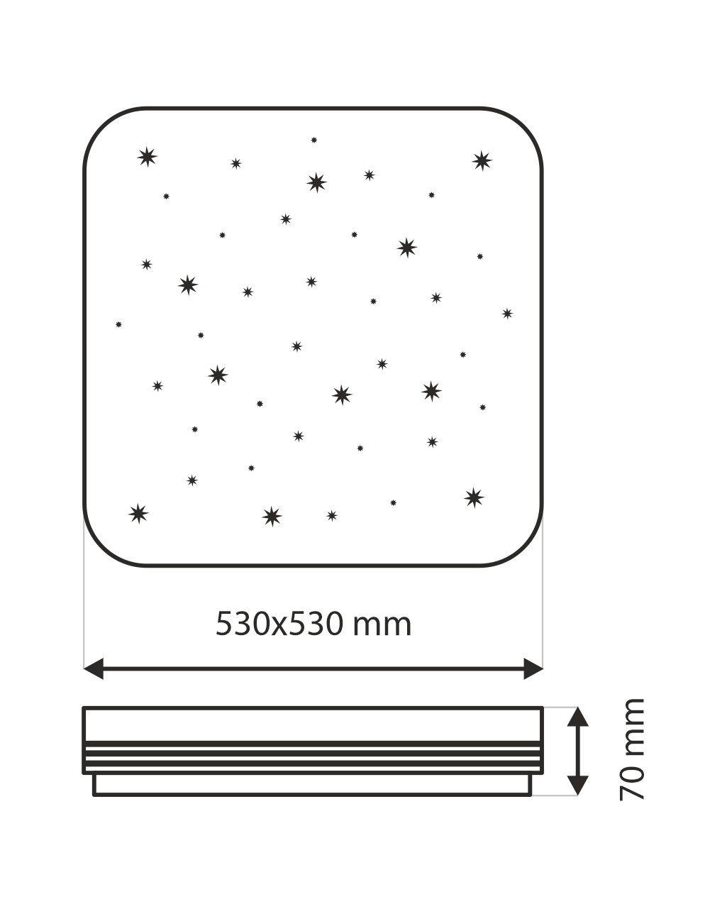 Vnější rozměr světla: 530x530x70mm