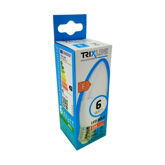 LED žárovka 6W 535lm E27 C35 studená bílá Trixline