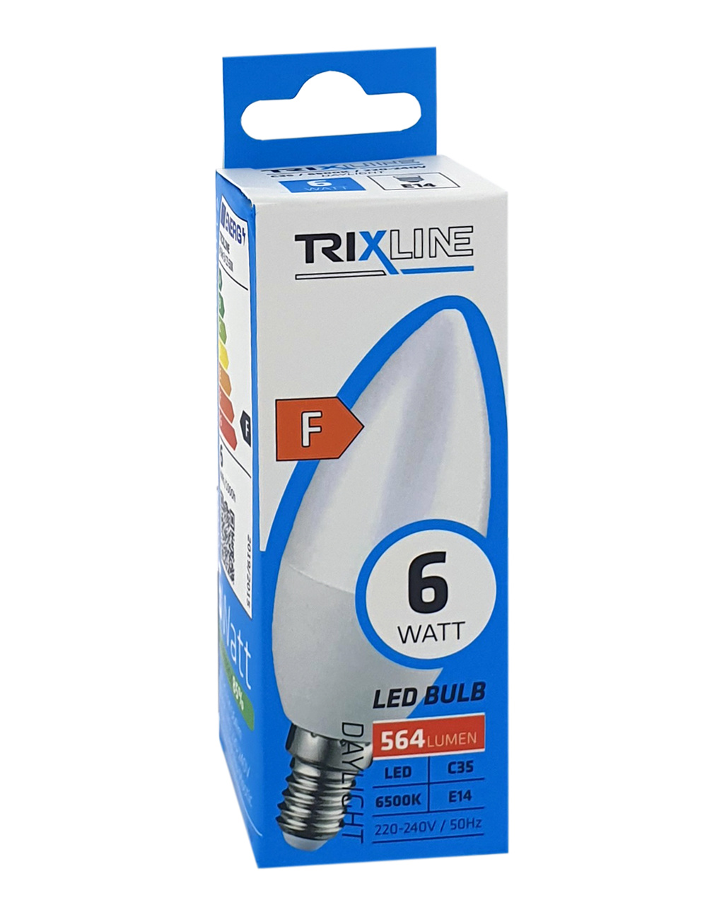 LED úsporná žárovka TRIXLINE s paticí E14, šetrná k životnému prostředí, neobsahuje žádnou rtuť ani olovo, navíc se dobře osvědčuje i při extrémně nízkých i vysokých teplotách, kdy s vláknovými žárovkami bývají problémy. Její životnost dosahuje až 30 000 hodin. Díky svému výkonu 6W výborně poslouží jako náhrada za klasickou 54W žárovku. LED žárovka se po zapnutí okamžitě rozsvítí bez jakékoliv prodlevy a vyzařuje studené bílé světlo 6500K.