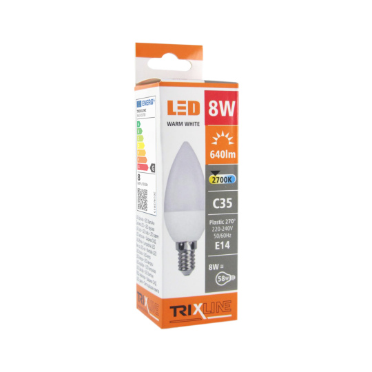 LED žárovka Trixline 8W E14 C35 teplá bílá