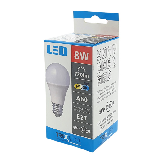 LED žárovka Trixline 8W E27 A60 studená bílá
