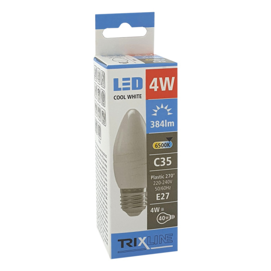 LED žárovka Trixline 4W E27 C35 denní světlo