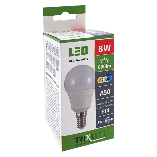 LED žárovka Trixline 8W E14 A50 neutrální bílá