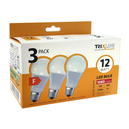 LED žárovka Trixline 12W A60 E27 teplá bílá 3 PACK