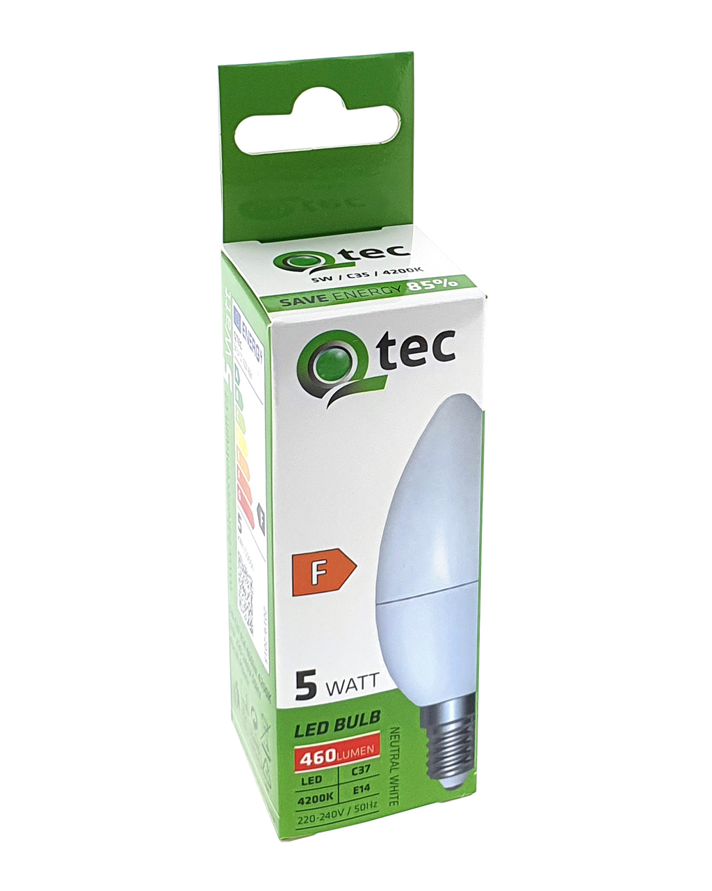 LED ŽÁROVKA Q tec je úsporná LED žárovka s paticí E14, šetrná k životnímu prostředí, neobsahuje totiž žádnou rtuť ani olovo, navíc se dobře osvědčuje i při extrémně nízkých i vysokých teplotách, kdy s vláknovými žárovkami bývají problémy. Její životnost dosahuje až 30 000 hodin. LED žárovka se po zapnutí okamžitě rozsvítí bez jakékoliv prodlevy a vyzařuje příjemné neutrální bílé světlo 4200K.